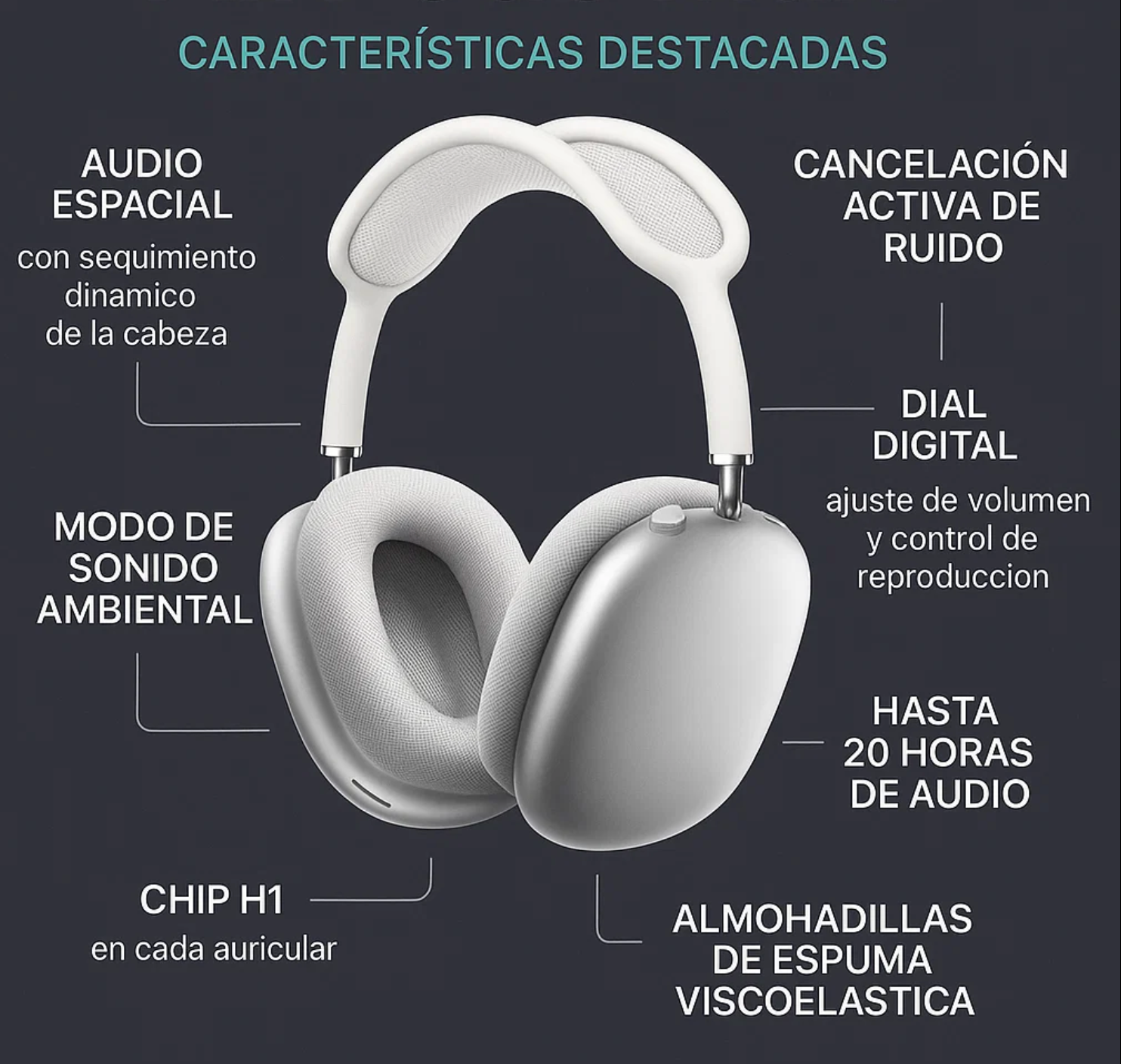 ¿Por qué pagar más cuando puedes tener una réplica que imita a la perfección los AirPods Max con una resistencia y duración de batería sorprendentes por mucho menos dinero?