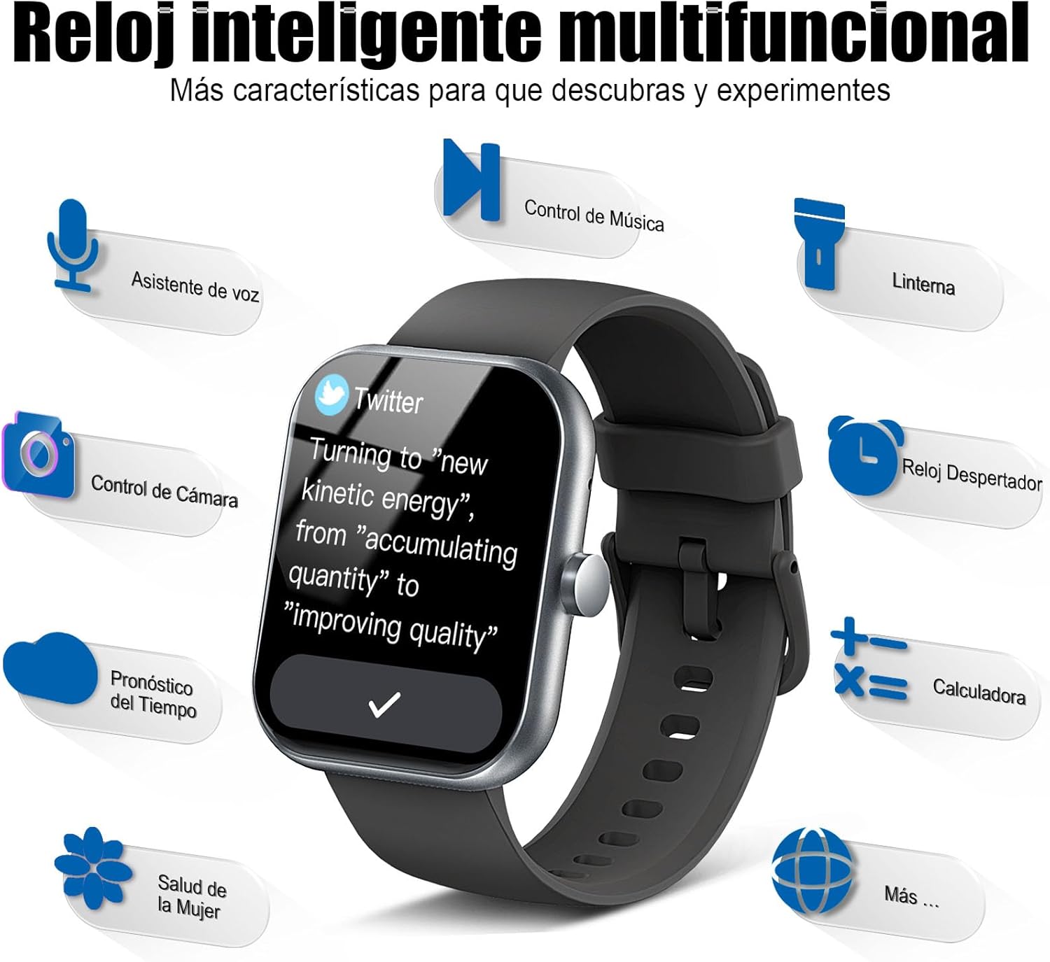 Este smartwatch es compatible con sistemas operativos Android e iOS, lo que permite recibir mensajes, realizar llamadas y utilizar el asistente de voz Chat GPT directamente desde la muñeca, sin importar el dispositivo móvil que utilices.