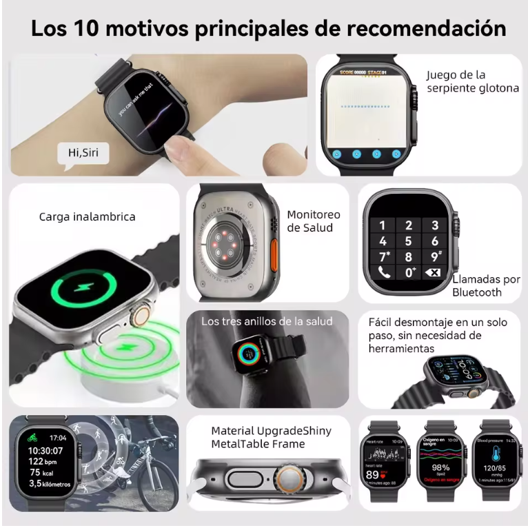 👉 Con el Smartwatch Ultra Pro, cambias de look con solo cambiar la correa: blanco para los días intensos, negro para las noches con estilo.